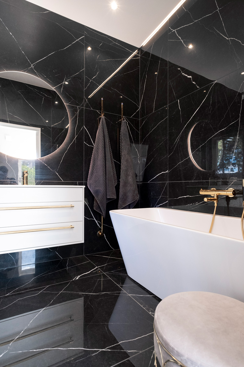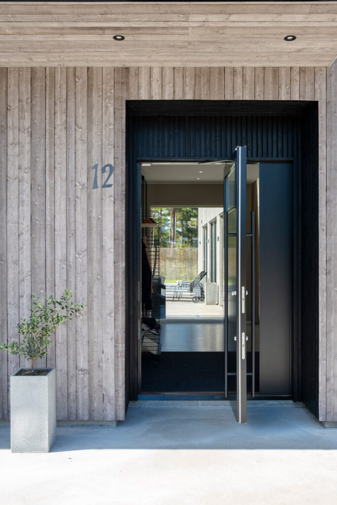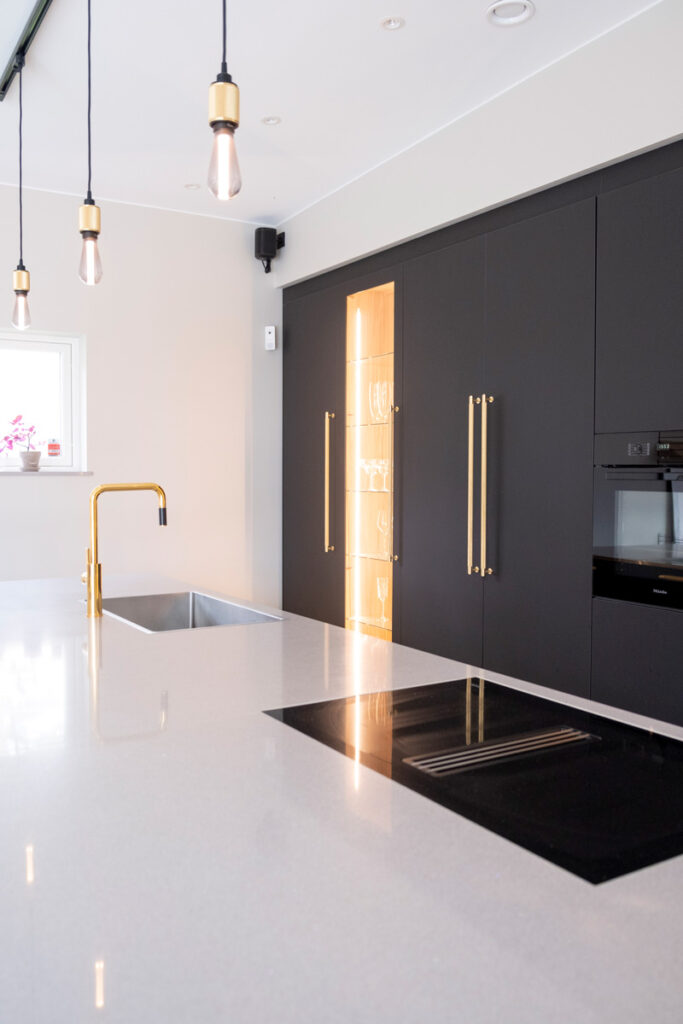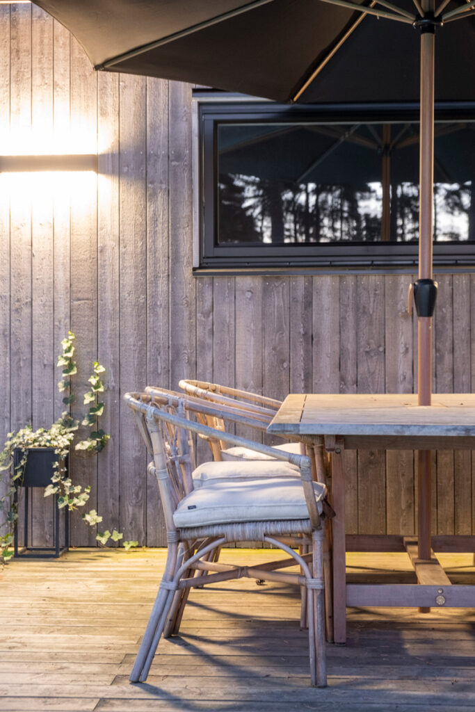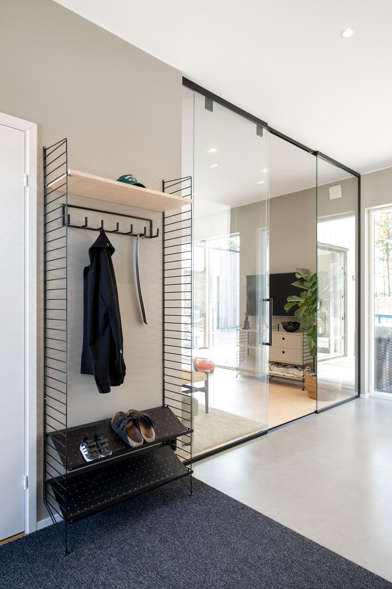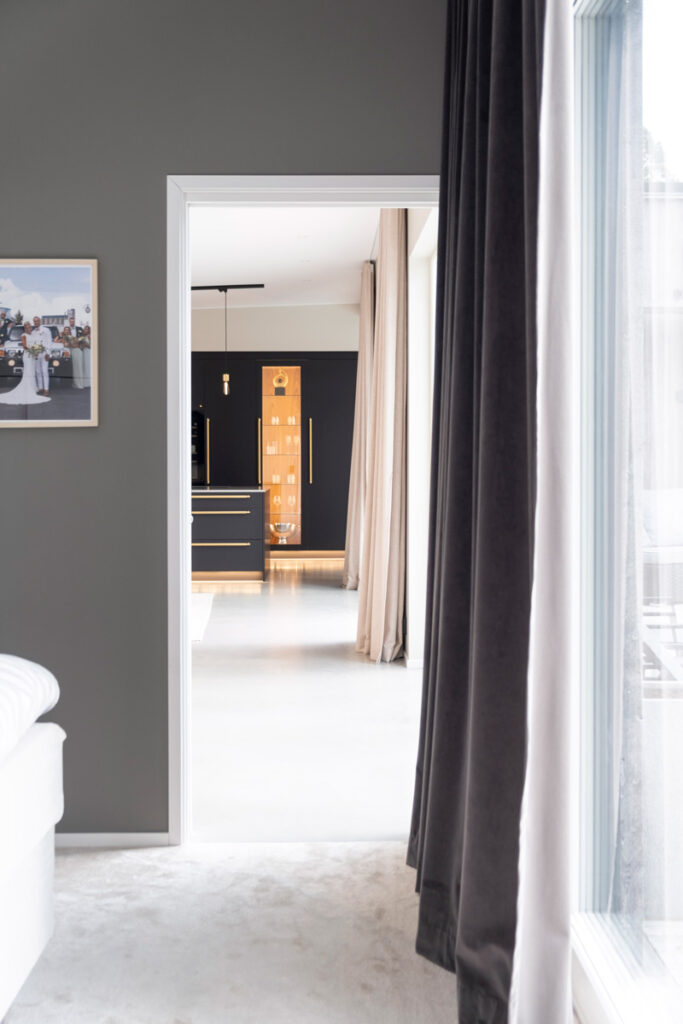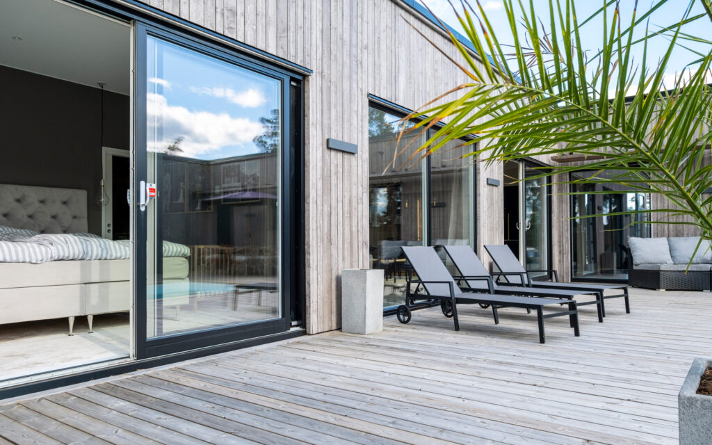 Villan är utformad som ett U-hus med en skyddad innergård – en privat oas där inne och ute möts. Generösa glaspartier mot gården förstärker ljusinsläppet och suddar ut gränsen mellan bostad och utemiljö, samtidigt som husets yttre uttryck är mer slutet och diskret mot omgivningen. Med precision i utförandet och hög slutfinish har vi skapat ett hem som kombinerar funktion, estetik och långsiktig kvalitet – anpassat för familjeliv med exklusiv känsla.